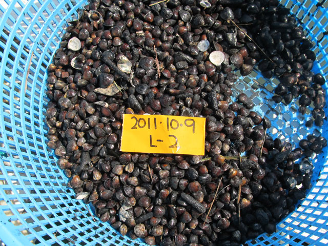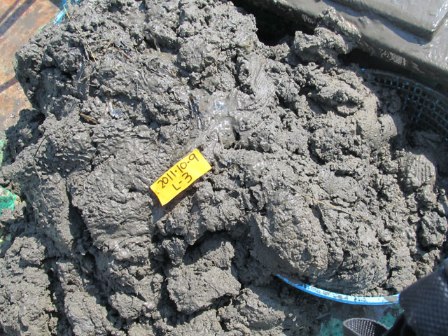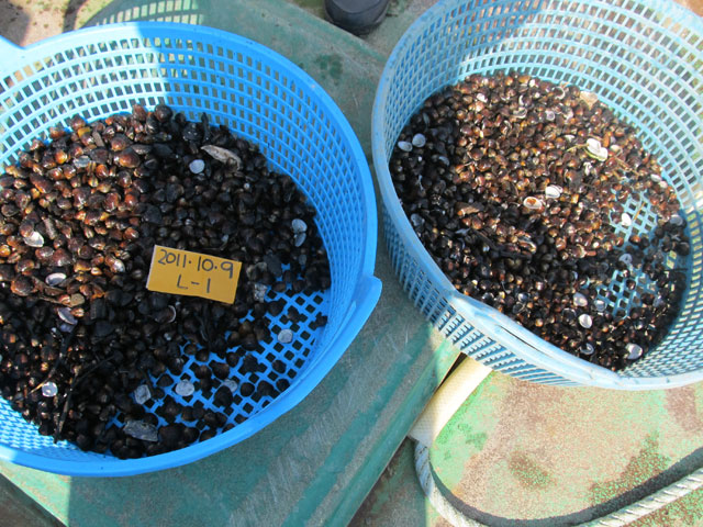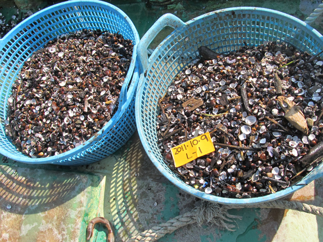 今回の調査では、ヘドロ状態ではなく、数キロの“ヤマトしじみ”とキレイな泥?が少々採取されました。