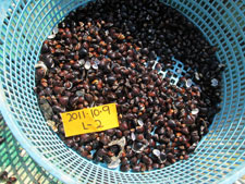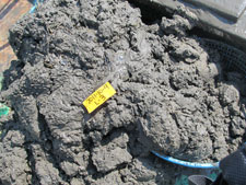 ライン2(河口堰下流域)→河口堰建設に伴う浚渫工事及び建設工事が始まってからの調査:1994年12月18日の調査からは、全てヘドロ状態でしたが、数年まえからは、ヘドロ(泥・土状態)の中にも少量の“ヤマトしじみ”の生息が確認され始めていました。