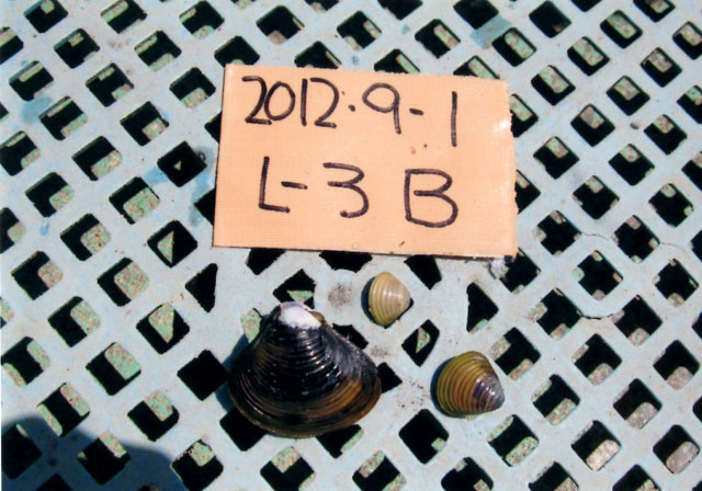 ※河口堰のゲートが閉鎖されてからは、全くヤマトシジミは捕れなくなっていたが、数年前から、徐々にヤマトシジミが湧き始め、今回の調査では、写真のようにかなり採れるようになってきた。